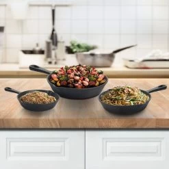 MegaChef 2 Piece 14 Inch Heavy Duty Cast Iron Wok With Wood Lid