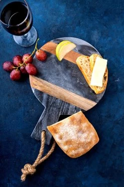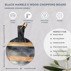 Polish up the presentation of any charcuterie board display with the charcuterie marble board. The collection contains a variety of black and white marble slab inspired cutting boards that double up as a cutting board.