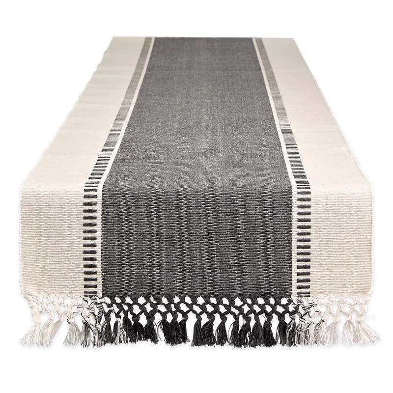 13″ x 108″ Black and White Dobby Striped Rectangular Table Runner