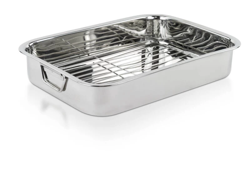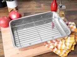 An essential piece of cookware for every family home, this stainless steel roasting pan with roasting rack is perfect for the holidays or that Sunday roast.