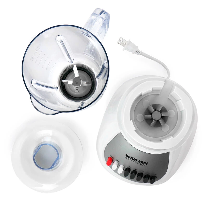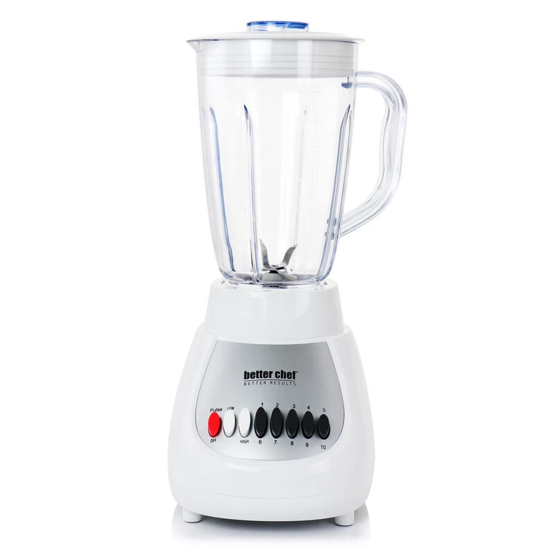 The Better Chef 10 Speed 350 Watt Plastic Jar Blender is versatile and durable. This blender is a must have countertop accessory with its 10 continuous speeds and powerful ice 350 Watt crushing power. Comes with a glass jar with removable chopping blade, electric base, and convenient removable filler cap that lets you add ingredients while in place. Item Dimensions: 7.00″ x 6.00″ x 16.00″ Item Weight: 4.20lbs