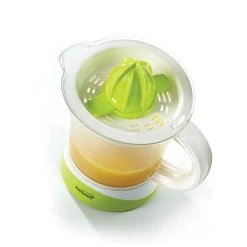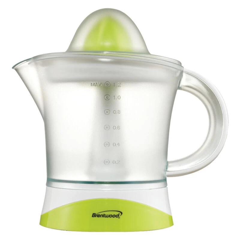 Easily make fresh juice at home with the 25w Brentwood J-17 40oz Electric Citrus Juicer. Juice oranges, lemons, limes and more. The self-reversing cone extracts maximum amount of juice. Clear view pitcher lifts off the base for immediate serving. Removable parts are dishwasher safe and stack for convenient storage. Item Dimensions: 8.00″ x 6.50″ x 11.00″ Item Weight: 2.00lbs