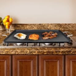 The Nonstick double Griddle Pan is perfect for making pancakes, grilling sandwiches, or frying your eggs & bacon. The heavy duty Aluminum is perfect for long term high heat cooking. With the nonstick surface feature the food release is very convenient and less messy. Enjoy all your favorite meals and treat your family or guests. Item Dimensions: 19.00″ x 11.50″ x 1.00″ Item Weight: 3.35lbs