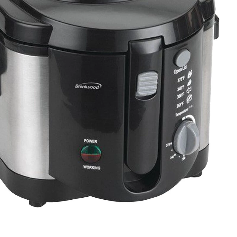 The powerful Brentwood 1200w 8-Cup Electric Deep Fryer fries all your favorite foods while taking up little counter and storage space. Indulge in crispy chicken tenders, crunchy onion rings, fluffy french fries, zucchini, fish and more. Includes durable metal fry basket. Features safety lock lid, large viewing window, adjustable temperature and convenient power indicator lights. Easy to clean removable lid and non-stick inner pot. Item Dimensions: 11.00″ x 11.50″ x 8.50″ Item Weight: 5.50lbs