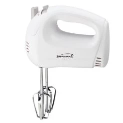 Mixing ingredients has never been easier! make your ultimate best dishes with great results from this easy to use and lightweight Brentwood 5-Speed Hand Mixer in White. The elegant design is a sure fit for your kitchen collection. The compact design enables easy handling while in use. Complete with 5 Speeds for your preference, it has an ejection button for easy cleaning, and comes with two heavy duty chrome plated beaters. Item Dimensions: 10.25″ x 3.50″ x 7.50″ Item Weight: 1.80lbs
