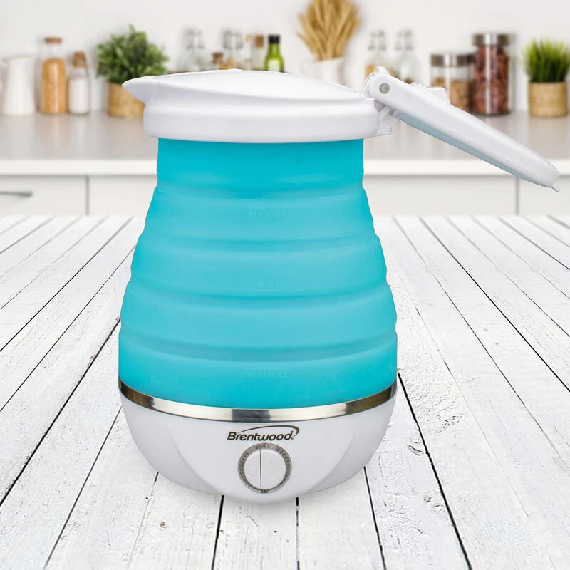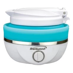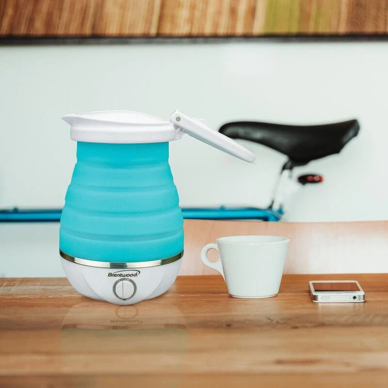 Use the powerful 800w Brentwood Dual Voltage 3.3 cup Collapsible Travel Kettle to quickly bring water to a boil out doors. Body and handle collapse for easy storage and travel. Features BPA Free materials, concealed heating element, and stainless steel hot plate. Bring along for lengthy road trips, off the grid camping adventures, day hikes, and other exploration experiences. Item Dimensions: 7.25″ x 5.50″ x 4.25″ Item Weight: 1.25lbs
