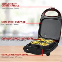 Use the Brentwood Mini Sous Vide Egg Bite Maker to make your favorite cafe style egg bites. Make food in as little as 5 minutes! This sous vide maker has a non stick interior for easy cooking and fast clean up. The compact design allows you to easily store on a countertop or slide away in your kitchen cabinets. Features a power indicator light, locking lid, carry handle, and compact storage. Bonus Recipes included! Item Dimensions: 8.50″ x 5.50″ x 3.50″ Item Weight: 1.60lbs