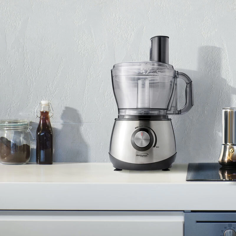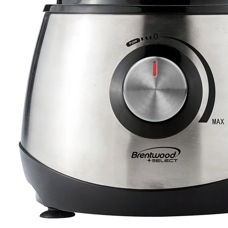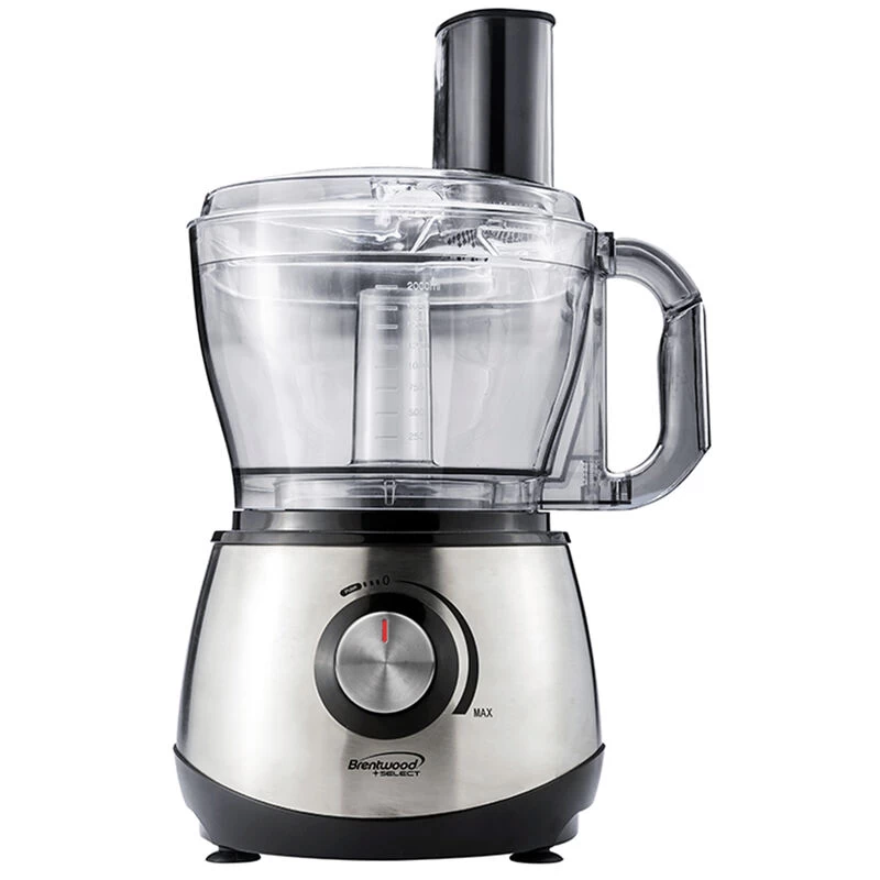Use the powerful 600 watt Brentwood Select FP-581 8-Cup Food Processor to chop, slice, shred, mix and puree within seconds. Choose between low to high variable speed and pulse settings. Anti-slip feet keep the food processor secure in place during operation. Includes an S blade, dough blade, cutting disc with interchangeable slicing, grating and julienne blades, and spatula. All food contact parts are completely BPA free. This stylish brushed stainless steel food processor looks great on every countertop. Chop, slice, shred, mix and puree within seconds with our powerful 600 watt food processor Features a large 8-cup work bowl Choose between variable low to high speed and pulse settings Included with our food processor is an S blade, dough blade, cutting disc with 3 blades and spatula Anti-slip suction feet keep the food processor secure in place Food processor has entirely BPA free parts This food processor has a beautifully brushed stainless steel finish with black accents 1 Year manufacturer warranty from date of purchase to repair or replace any defective unit Item Dimensions: 17.00″ x 11.00″ x 8.50″ Item Weight: 7.00lbs