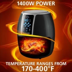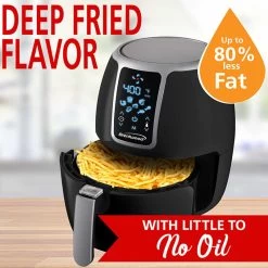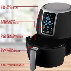 Use the powerful 1400 watt Brentwood 4-Quart Small Electric Air Fryer to fry foods to perfection quickly and evenly without the guilt of extra fat and calories. Our air fryer requires little to no oil to beautifully cook French fries, onion rings, chicken wings, steak, roasted veggies and more. Use the quick reference temperature guide and the 30 minute timer with auto shut off for fast, crispy results. Easily adjust the temperature between 170°F to 400°F. Cool touch, removable fry basket make serving easy. The frying pan and basket is made with a non-stick surface for effortless clean up. Item Dimensions: 12.20″ x 12.20″ x 10.50″ Item Weight: 3.80lbs