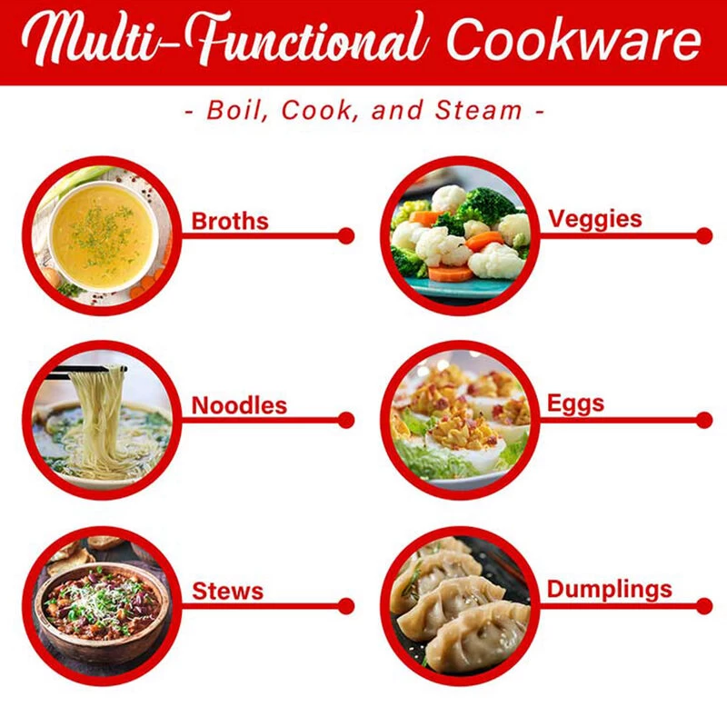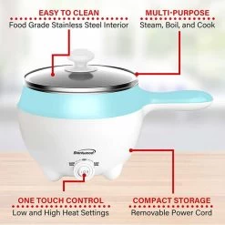 Use the 600 watt Brentwood HP-3013BK 1.3-Quart Stainless Steel Cordless Electric Hot Pot Cooker and Food Steamer to boil water, make authentic Japanese shabu shabu, traditional Chinese steamboat, Mongolian hot pot, steamed dumplings, homemade pasta, and more. Features 2 simple heat settings; Low and High. Safely cook with a fully stainless-steel interior, vented tempered glass lid, power indicator light, cool touch handles, and overheat and boil dry auto shut off. Simply lift the cordless hot pot off the 360° swivel base to easily serve at the dinner table. Steam rack and steam tray accessories are included. Item Dimensions: 12.75″ x 6.50″ x 7.00″ Item Weight: 2.40lbs
