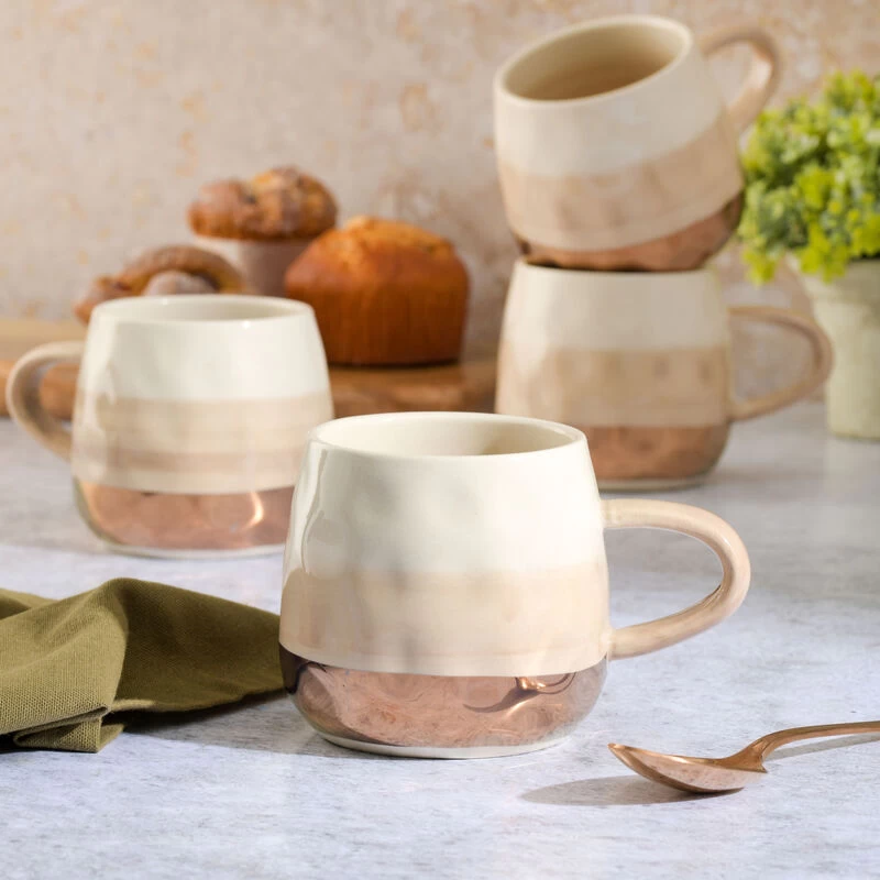Enchant the house with the Cravings By Chrissy Teigen 4 Piece 18 Ounce Stoneware Cup Set in Dove Gray. The barrel shaped beverage mug set dons a dove gray glaze with a gold bottom. Its stoneware construction is ideal for retaining both hot and cold drinks. Set is dishwasher safe for fast and easy cleaning. Enjoy cozy drinks in cold weather, or delight yourself in cold desserts after dinner. Item Dimensions: 14.00″ x 12.00″ x 10.00″ Item Weight: 4.50lbs