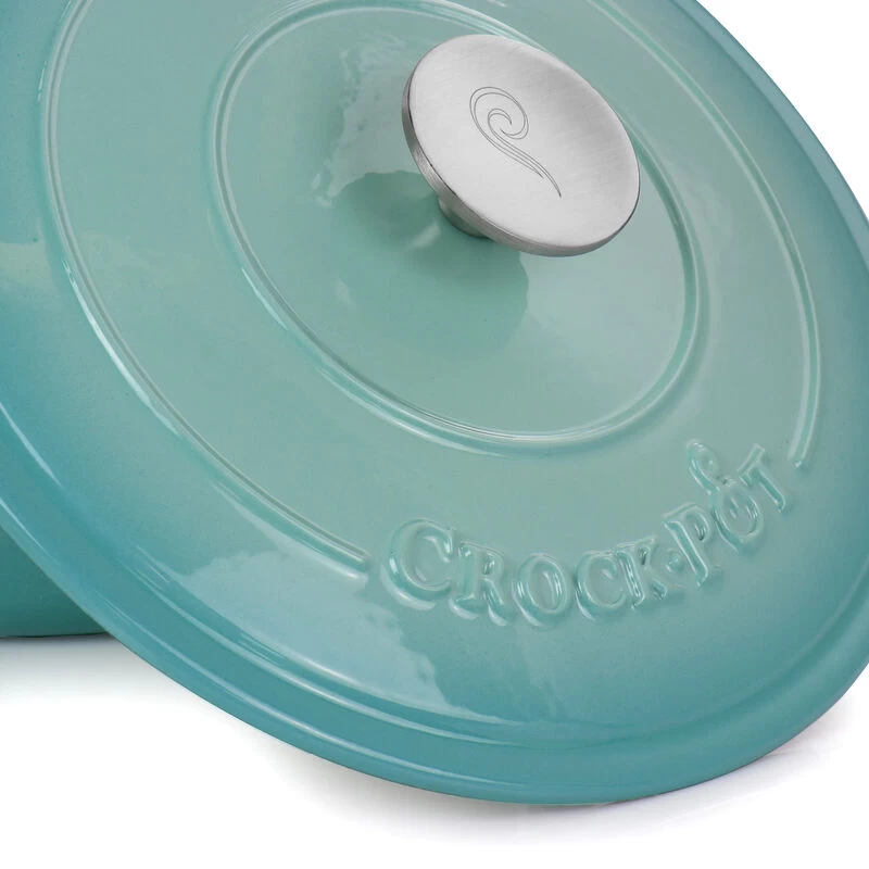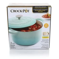 The Crock-Pot Artisan 2 Piece 5 Quarts Enameled Cast Iron Dutch Oven is ideal for delicious dinners for any occasion. This cookware’s self-basting lid creates a continuous basting environment for more flavorful meals. It distributes and retains heat evenly and allows for a multitude of cooking techniques. The oversized handles and stainless steel knob provides a sturdy grip for easy handling and carrying. This cooking pot is perfectly suitable for a large array of dishes such as baked potato soup, spiced rice, and warm curry for the family to enjoy! Item Dimensions: 13.00″ x 9.50″ x 5.00″ Item Weight: 11.60lbs