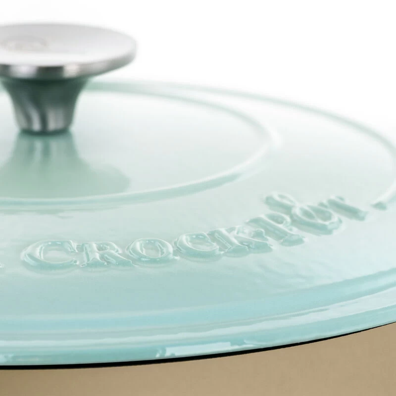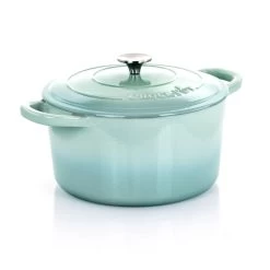 The Crock-Pot Artisan 2 Piece 7 Quarts Enameled Cast Iron Dutch Oven is ideal for delicious dinners for any occasion. This cookware’s self-basting lid creates a continuous basting environment for more flavorful meals. It distributes and retains heat evenly and allows for a multitude of cooking techniques. The oversized handles and stainless steel knob provides a sturdy grip for easy handling and carrying. This cooking pot is perfectly suitable for a large array of dishes such as baked potato soup, spiced rice, and warm curry for the family to enjoy!