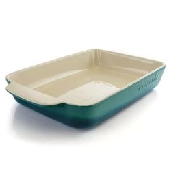 Bake and serve your best dishes with the Crock Pot Artisan 5.6 quart stoneware bake pan in teal. The stoneware make allows for oven based meals. Cook savory feasts for guests like lasagna, mac n cheese, and stuffed chicken. The casserole dish is microwave safe so you can reheat leftovers and bring the pan straight to the table. It’s also dishwasher safe for easy cleaning after dinner. Item Dimensions: 18.00″ x 11.25″ x 3.00″ Item Weight: 8.00lbs