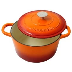 Gibson Home presents the 5 Quart Artisan Crock-Pot Cast Iron Dutch Oven with a Self-basting Lid, ideal for delicious dinners for any occasion. The self-basting lid creates a continuous basting environment for more flavorful meals. The Dutch Oven distributes and retains heat evenly and allows for a multitude of cooking techniques. The oversized handles and stainless steel knob provide a sturdy grip for easy handling and carrying. Crock Pot: 11.50″ x 10.80″ x 11.80″ Capacity: 160 FL OZ Features: * Made of enameled cast iron with a non-stick surface for even heat distribution and retention * Perfect for cooking, serving and storing * Oversized handles for easy handling * Self basting lid * Easy to clean and rust free * Hand wash recommended Item Dimensions: 11.50″ x 10.80″ x 11.80″ Item Weight: 12.00lbs