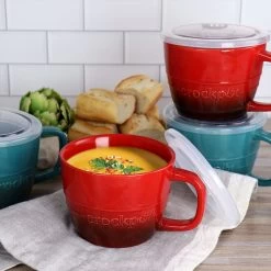 For ice cream sundaes, chilis, soups, and everything in between, this Crock-Pot Artisan Stoneware Soup Bowl Set offers a beautiful backdrop to make your meals look just as good as they taste. Leave your dinner guests in admiration of the glossy reactive glaze on this gorgeously finished gradient stoneware. With thick integrated handles and included to-go lids, you’re able to comfortably transport hot foods from your kitchen to table and even on the go with ease. Constructed with durable stoneware that is dishwasher and microwave for easy reheat and fast clean up. This dish set is made for long-lasting beauty and durability to ensure use for many dinners to come. Item Dimensions: 6.50″ x 5.10″ x 4.00″ Item Weight: 1.35lbs