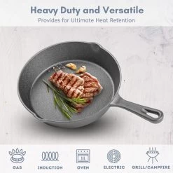 - HEAT RETENTION: This round cast iron pan set is sure to keep food cooking at an even temperature with heat resistance of 500 F degrees.