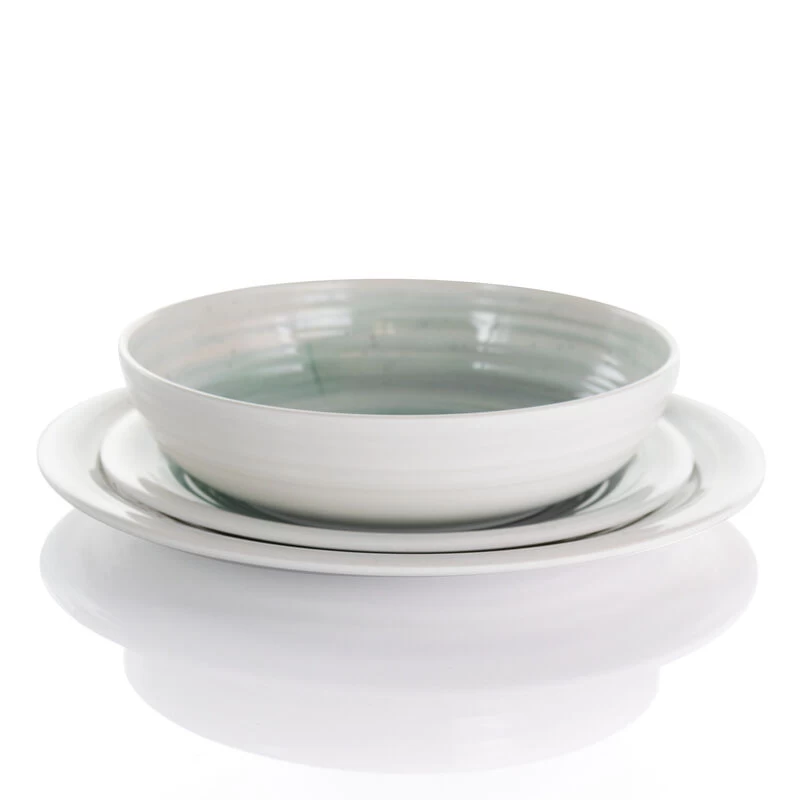 Beautify the dinning table for your big night with the Elama Potters Wheel 12 Piece Lightweight Melamine Dinnerware Set in Light Blue. With a natural speckled and swirled design, the set features a hand spun like style with a burst of light blue in the center. The ribbed textured on each plate helps keep food and sauces in place. Its lightweight melamine construction is shatter resistant for now fret handling. For proper and long lasting care do not microwave and wash in the top rack of dishwashers. Great for outdoor festivities from barbecues and picnics to pool parties and kid’s birthdays. Set: 12Pc Dinnerware Set Material: Lightweight Melamine Finish: Glossy Shape: Round Color: Light Blue Lightweight Top Rack Dishwasher Safe Do Not Microwave Set Includes: Four Dinner Plates Four Dessert Plates Four Bowls Per Item Measurements: Dinner Plate: 10.5″ Diameter, 1″ Height, .4 Lbs Weight Dessert Plate: 8.5″ Diameter, 3/4″ Height, .3 Lbs Weight Bowl: 8″ Diameter, 2″ Height, .4 Lbs Weight, 30 Fluid Oz Item Dimensions: 11.50″ x 8.00″ x 11.50″ Item Weight: 4.00lbs