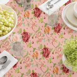52″ x 120″ Rectangle Tablecloth. Printed and Sewn in the USA, 100% Cotton. Hemmed Edges. Seamless cloth. Machine Washable, Gentle Cycle with Light Iron touch up as needed. Perfect for all occasions!