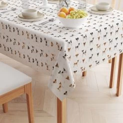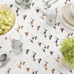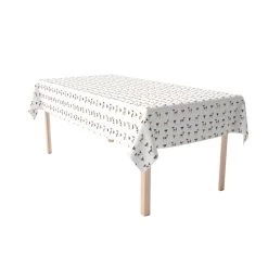 52″ x 120″ Rectangle Tablecloth. Printed and Sewn in the USA, 100% Cotton. Hemmed Edges. Seamless cloth. Machine Washable, Gentle Cycle with Light Iron touch up as needed. Perfect for all occasions!