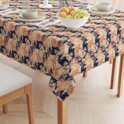 52″ x 104″ Rectangle Tablecloth. Printed and Sewn in the USA, 100% Cotton. Hemmed Edges. Seamless cloth. Machine Washable, Gentle Cycle with Light Iron touch up as needed. Perfect for all occasions!