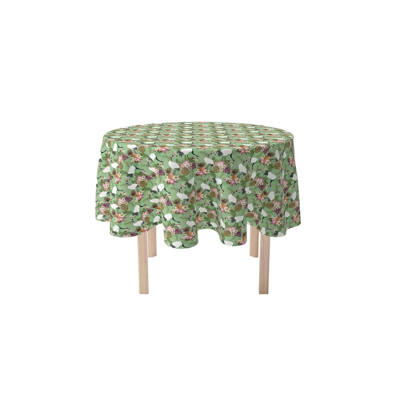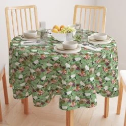 60″ Round Tabelcloth (size is of tablecloth not table). Made in the USA, 100% Milliken Spun Polyester. Merrowed Edges. Seamless cloth. Product is printed. Machine Washable: Warm water wash, cold rinse, tumble dry low. Light Iron touch up as needed. Will soften after each wash to a cotton feel. Engineered to resist stain absorption and linting. Perfect for any and all occasions at home, hotels & restaurants alike!