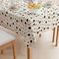 52″ x 52″ Square Tablecloth. Printed and Sewn in the USA, 100% Cotton. Hemmed Edges. Seamless cloth. Machine Washable, Gentle Cycle with Light Iron touch up as needed. Our Cotton is a natural fiber woven twill fabric. Perfect for all occasions!