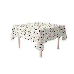 52″ x 52″ Square Tablecloth. Printed and Sewn in the USA, 100% Cotton. Hemmed Edges. Seamless cloth. Machine Washable, Gentle Cycle with Light Iron touch up as needed. Our Cotton is a natural fiber woven twill fabric. Perfect for all occasions!