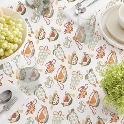 70″ x 70″ Square Tablecloth. Made in the USA, 100% Polyester. Hemmed Edges. Seamless cloth. Machine Washable with Light Iron touch up as needed. Will soften after each wash. Engineered to resist stain absorption. Perfect for all occasions!