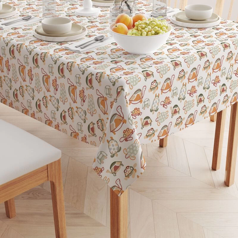70″ x 70″ Square Tablecloth. Made in the USA, 100% Milliken Spun Polyester. Hemmed Edges. Seamless cloth. Product is printed. Machine Washable: Warm water wash, cold rinse, tumble dry low. Light Iron touch up as needed. Will soften after each wash to a cotton feel. Engineered to resist stain absorption and linting. Perfect for any and all occasions at home, hotels & restaurants alike!