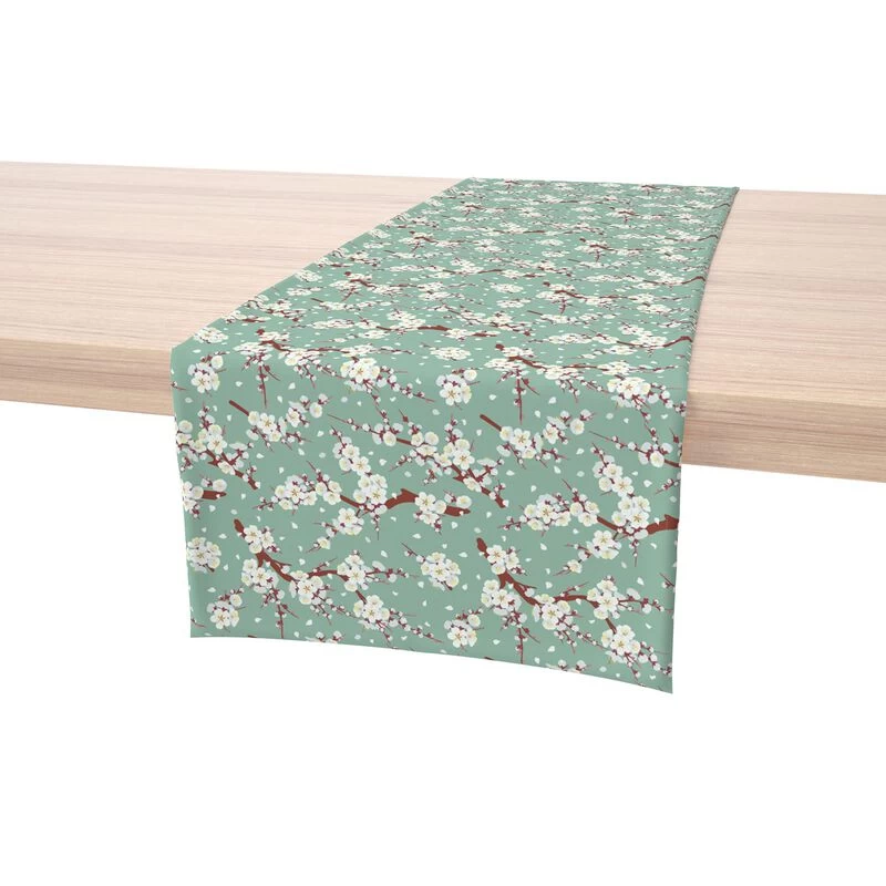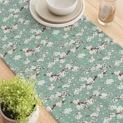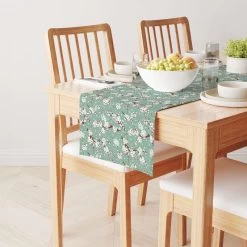 16″ x 72″ Table Runner. Printed and Sewn in the USA, 100% Cotton. Hemmed Edges. Machine Washable, Gentle Cycle with Light Iron touch up as needed. Our Cotton is a natural fiber woven twill fabric. Perfect for all occasions!