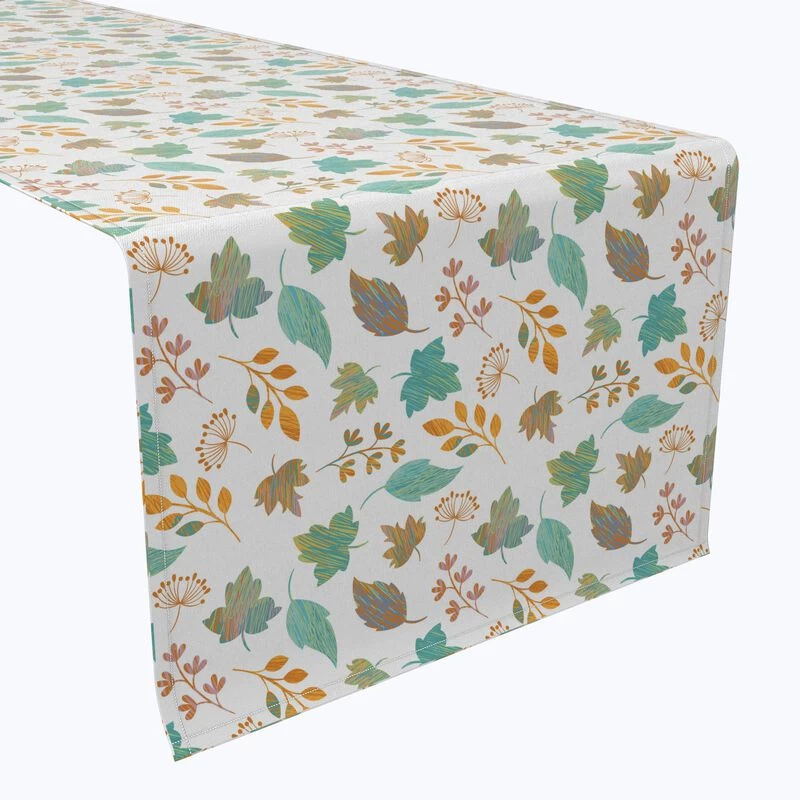 16″ x 72″ Table Runner. Printed and Sewn in the USA, 100% Cotton. Hemmed Edges. Machine Washable, Gentle Cycle with Light Iron touch up as needed. Our Cotton is a natural fiber woven twill fabric. Perfect for all occasions!