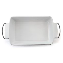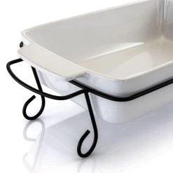 The Gibson Elite 2 piece 15.5 inch stoneware bakeware with metal rack really puts the feast together. This 2 piece serving set features a rectangle bakeware container made of stoneware. Its oven safe so you can cooking and directly bring it from the oven to the dinning table. Display your wonderful meal with the matte black metal rack that keeps the heat away from the table’s surface. Serve just about anything you can think of, from peach cobblers and apple strudels to baked tilapia and stuffed chicken breasts. Perfect for any large gatherings, use it to display a side dish or show off the main course! Item Dimensions: 17.00″ x 4.00″ x 8.00″ Item Weight: 5.45lbs