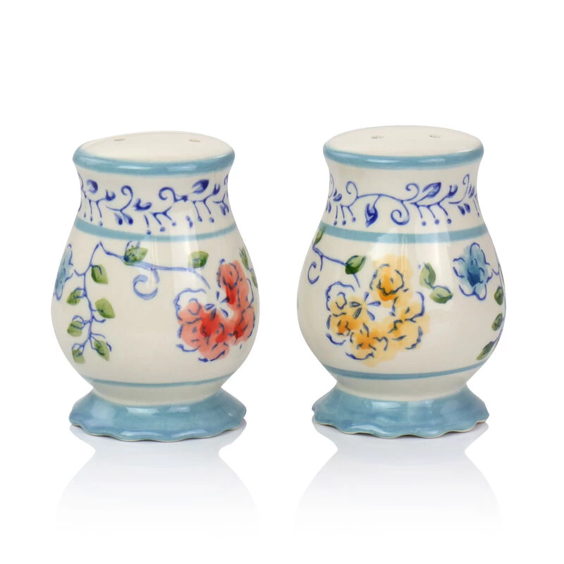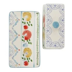 The Gibson Elite Anaya 5 Piece Hand Painted Stoneware Table Accessory Set is just the thing a home needs to welcome in any guest. Each piece features whimsical floral designs with country cottage like patterns. The stoneware construction is durable enough to handle any situation at the dinner table. Season up plates with the matching shakers. place serving spoons on the spoon rest in style and offer butter for freshly baked bread with the charming butter dish! Item Dimensions: 10.60″ x 4.60″ x 4.00″ Item Weight: 2.00lbs