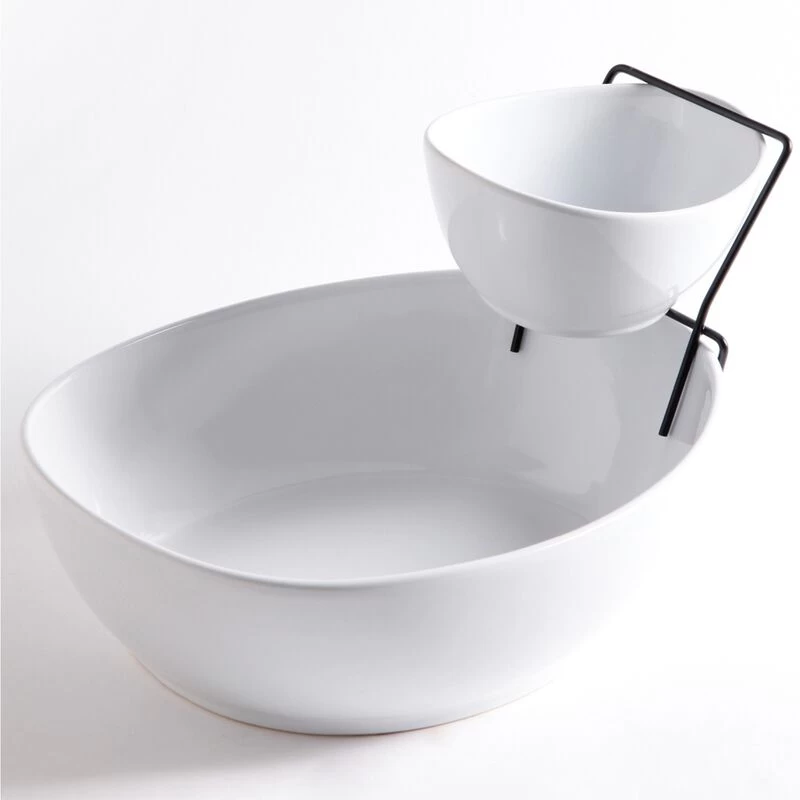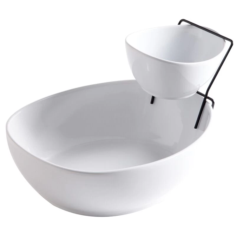 Add an element of fun and charm to your next gathering with the Gracious Dining 2-tier chip and dip set. This fine ceramic serving set is both a fun and functional way to treat your guests to great hors d’oeuvres with style and pizzazz. With its chic look and sleek contours this serving set is sure to be a conversation starter at your next gathering. Includes: One – 11.5in Chip Bowl One – 5.75in Dip Bowl One – Wire Rack Item Dimensions: 11.50″ x 11.50″ x 8.00″ Item Weight: 3.00lbs