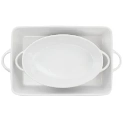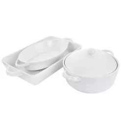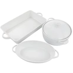 Part of the Gracious Dining Collection by Gibson Elite this bakeware set is sleek and modern. Sophisticated style that brings character and richness to the table, blending seamlessly with a wide array of colors and motifs. This set includes one 2.8 quart rectangle baking dish, one 1.4 quart casserole with lid, and one 0.9 quart oval baking dish. This set is dishwasher, microwave, and oven safe for easy and convenient heating and clean up. Item Dimensions: 7.75″ x 16.50″ x 9.50″ Item Weight: 11.50lbs