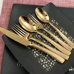 The Gibson Elite Stonehenge 20-Piece Stainless Steel Flatware Set is essential for everyday dining. Its rose gold design is highligted by a subtle yet intricate handle for added elegance. Despite its unique and original look, this classy set will blend with any table decor, making it a staple for every home. Includes four of each : Dinner Knives, Dinner Forks, Teaspoons, Salad Forks, and Dinner Spoons Item Dimensions: 11.00″ x 8.00″ x 3.00″ Item Weight: 3.95lbs