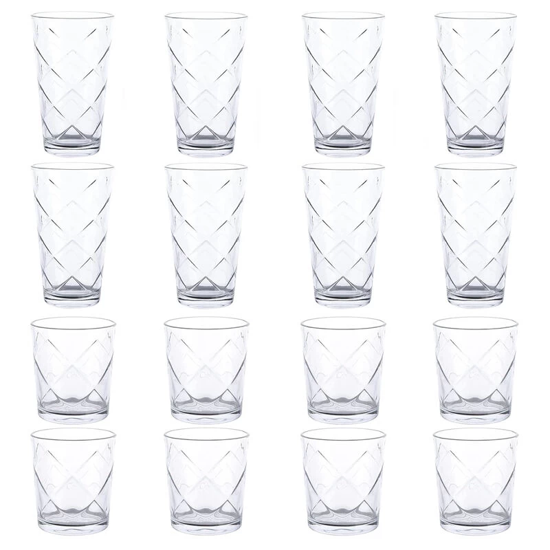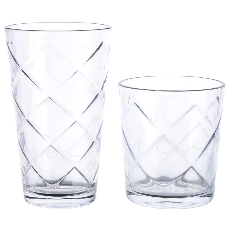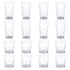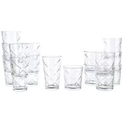 Serve the perfect drink with the stunning styling of Gibson Home 16 Piece Lattice Glassware Drinkware Set. Each tumbler and double old fashion features an embossed lattice pattern with in their containers. The clear glass body is well made and dishwasher safe for better quality of life. Enjoy a nice evening with a glass of whiskey, orange juice in the morning, or party with friends and cocktails! Item Dimensions: 15.50″ x 12.25″ x 8.50″ Item Weight: 14.75lbs