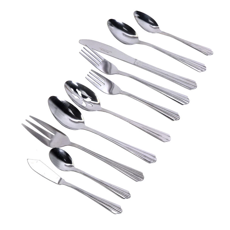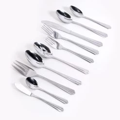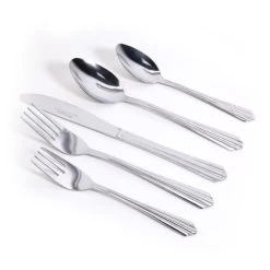 Take your dining experience to new heights with the Gibson Home Classic Canberra 45 Piece Stainless Steel Flatware Set. This set of beautiful pieces is a harmonious combination of form and function. This set comes complete with rectangular bodies each cast with stainless steel, tumble finish, inlayed contoured grip handles. Gibson Classic Canberra 45 Piece Flatware Set Includes: Eight Salad Forks,Eight Dinner Forks, Eight Dinner Knives, Eight Dinner Spoons, Eight Tea Spoons, One Serving Fork, One Serving Spoon, One Slotted Serving Spoon, One Butter Knife and One Sugar Shell. Item Dimensions: 9.00″ x 5.00″ x 3.00″ Item Weight: 2.00lbs
