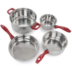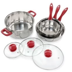 The Gibson Home Crawson 7 Piece Stainless Steel Cookware Set in Chrome with Red Handles is the perfect kitchen set to start off your cookware collection. Bring your cooking game up a notch with these finely crafted stainless steel pots and pans that are sure to be durable and long-lasting. Each piece in this collection is dishwasher safe for easy and convenient cleaning. Item Dimensions: 17.00″ x 10.00″ x 5.20″ Item Weight: 5.20lbs
