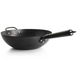 The Gibson Home hammered 13in carbon steel wok is just what you need when preparing a large meal for your family or for guests. Constructed with heavy gauge carbon steel material that heats evenly, this wok will cook large portions of food quickly and thoroughly. Thermal treated steel provides maximum protection against wear and rust while also being lightweight, making it east to move from stove top to sink. Wide 13in diameter and deep 4in height. Compatible with gas, halogen, electric, vitroceramic, and induction stovetops. Item Dimensions: 24.50″ x 13.40″ x 4.00″ Item Weight: 3.25lbs