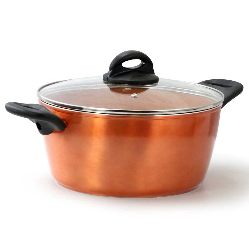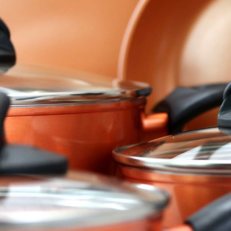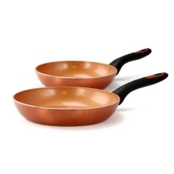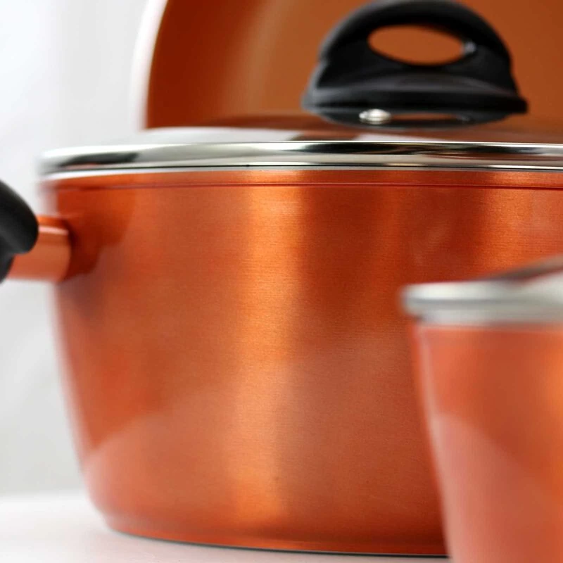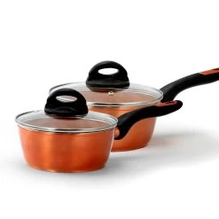 Upgrade your cooking game with this Gibson Home Hummington 10 Piece Ceramic Nonstick Aluminum Cookware Set in Copper. This collection comes with all the essential pots and pan you’ll ever need to create flavorful concoctions. Each tool comes equipped with titanium infused coating, vented tempered glass lids, and Bakelite handles and knobs. Every pan is made of aluminum with a nonstick ceramic coated interior. Beautifully made with a copper finish, this set will complement any kitchen space. Item Dimensions: 20.50″ x 12.00″ x 4.20″ Item Weight: 12.00lbs