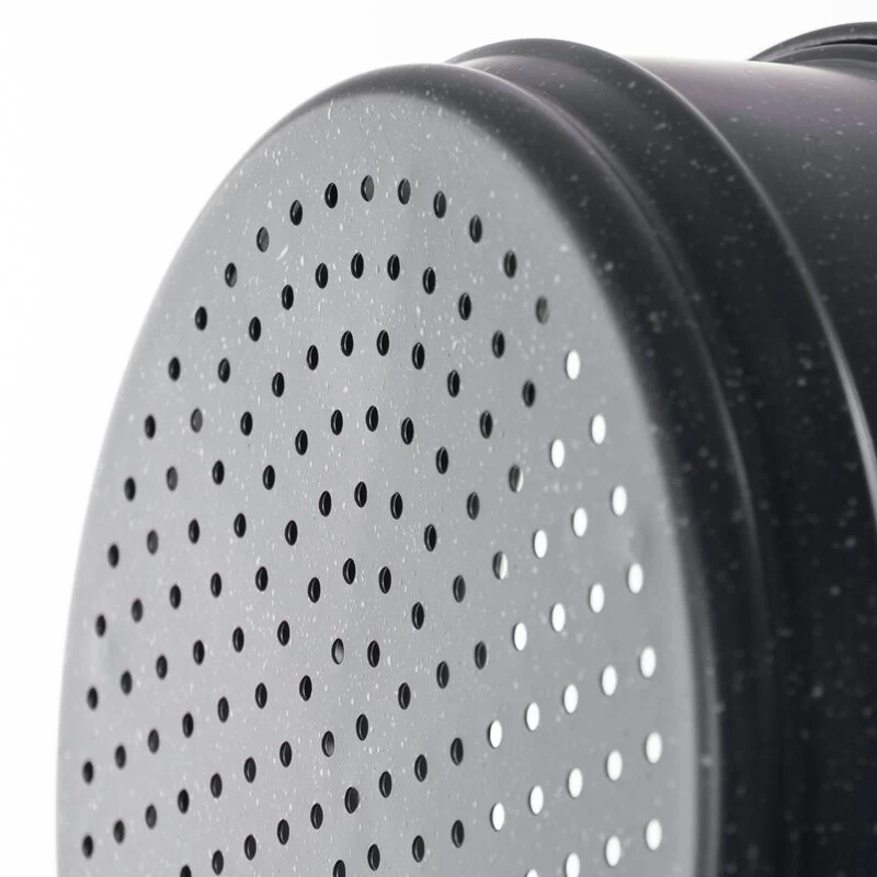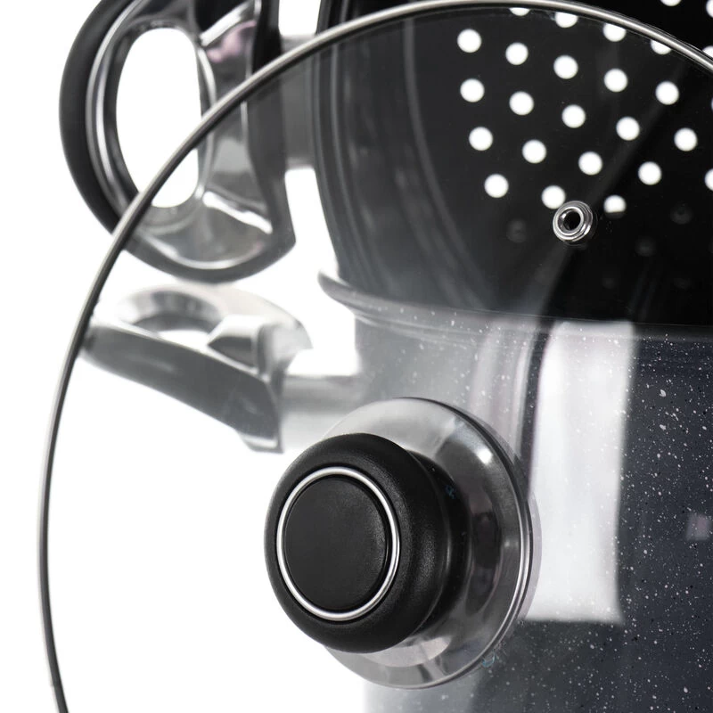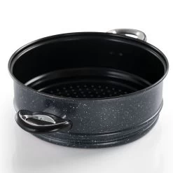 The Gibson Home Leighton 3 Piece 8.5 Quart Steel Nonstick Pasta Pot with Steamer in Black is the perfect cooking companion. The stock pot features an easy to clean non-stick coated interior that allows low-fat cooking and easy food release. The charming speckled design contains a cozy aesthetic that can match any decorated kitchen. Use the steamer insert for home made tamales, dumplings, or steamed veggies! Item Dimensions: 12.00″ x 9.40″ x 9.60″ Item Weight: 5.50lbs