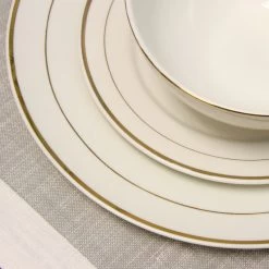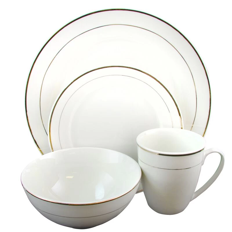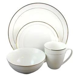 The Gibson Home Palladine 16-Piece Dinnerware Set is made of beautiful fine Ceramic and will look lovely on your dining room table. These durable dishes are white with a double banded design accented with gold. All of the pieces you need for serving breakfast or brunch, a simple lunch or a full-course dinner are included. Pair this ceramic dinnerware set with sleek-looking flatware to make an elegant statement. Item Dimensions: 10.75″ x 10.75″ x 0.25″ Item Weight: 1.75lbs