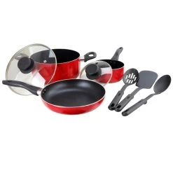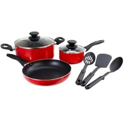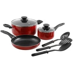 The Gibson Palmer 8-Piece Cookware Set in Red is the perfect set to have in any kitchen. The Palmer set is the perfect companion whether whipping delicatessen for small or big gatherings. With 3 cooking pots and pans, the Palmer set will assist with all your cooking needs. It features heat-resistant handles and knobs for a safe cooking experience, as well as vented tempered glass lids for a more efficient process. Additionally, it comes with kitchen utensils for added convenience. Item Dimensions: 19.80″ x 11.50″ x 7.00″ Item Weight: 7.50lbs