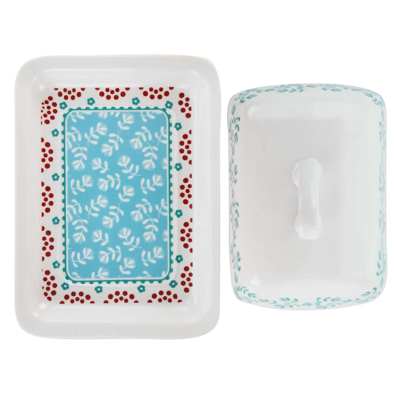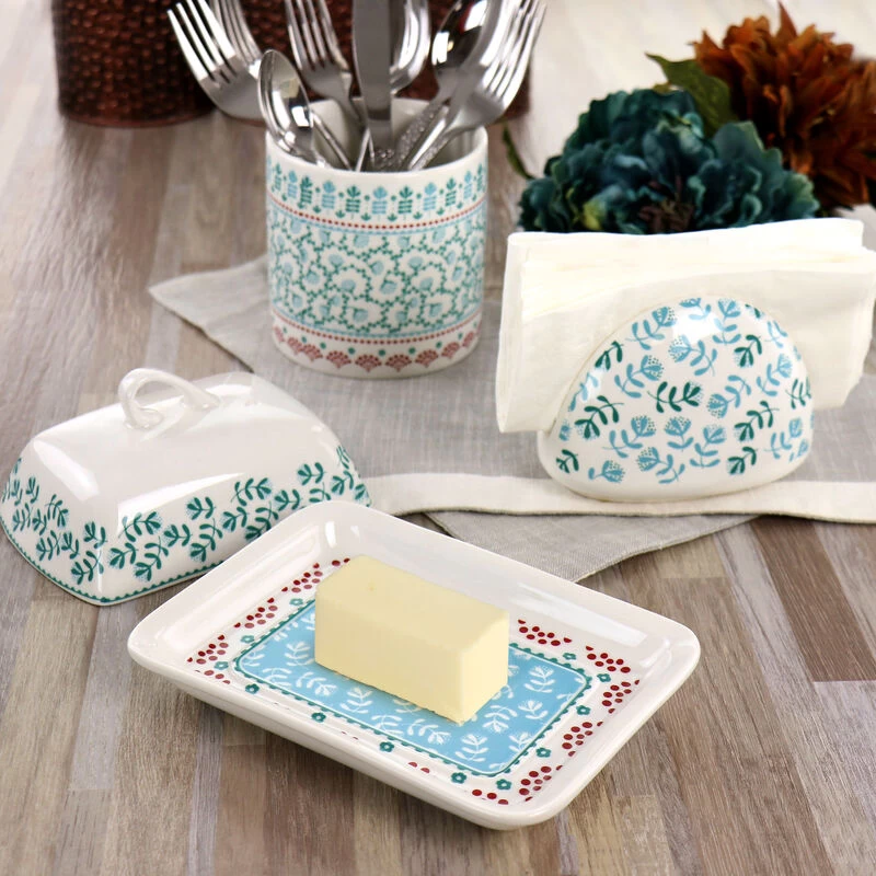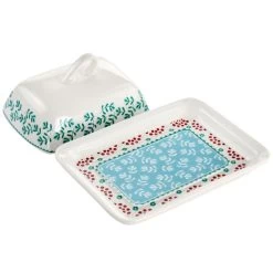 The Gibson Home Village Vines collection brings a beautiful and colorful floral and vine print to your every day dining pieces. This butter dish features a vine and floral print, making this piece stand out in a subtle and classic way. Constructed of fine ceramic, this durable set is microwave and dishwasher safe for easy maintenance. This colorful piece is great for adding to your every day countertop storage, or taking out for special occasions to add some color to your table! Item Dimensions: 4.20″ x 6.00″ x 3.50″ Item Weight: 1.60lbs