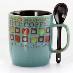 This Set of 8 Mr. Coffee Cafe Americano 14 oz Mugs offers you an attractive and convenient way to enjoy your favorite hot beverage on a chilly winter evening. Included with the set are spoons that you can store in a hole in the handle of each mug for your convenience. The Mr. Coffee mugs, set of eight, comes in red, yellow, blue and green. The stoneware set is whimsically decorated with a repeating pattern of the word “coffee.” DUAL TONE HIGH QUALITY REACTIVE GLAZE STONEWARE MUG SET: This lovely set by Mr. Coffee features two toned 4 mugs with spoons. COFFEE LOVERS DESIGN: Add elegance to your coffee shots with this multi color coffee mugs set. You will love to make the official start to your day with these mugs with a chic style HIGH QUALITY, NON-TOXIC STONEWARE – Made from fine ceramic, our cup and saucer sets are food-safe, non-toxic, and durable for daily use. Stoneware is microwave and dishwasher safe COFFEE MUG SET INCLUDES 4 cups ( 14 oz each ) and 4 spoons, Assorted colors Features: Dishwasher and microwave safe Spoon fits inside handle Made of durable stoneware Set comes with 4 assorted colored mugs Item Dimensions: 9.00″ x 8.00″ x 3.00″ Item Weight: 2.11lbs