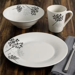 Netherwood is a stylish whiteware collection perfect for special occasions or everyday meals. The cherry on top of this elegant porcelain dinnerware is indeed a black cherry decorated pattern. Microwave and dishwasher safe. Includes: Four – 9″ Dinner Plate Four – Soup Bowl Four – 9oz Mug Item Dimensions: 9.00″ x 9.00″ x 0.75″ Item Weight: 0.23lbs