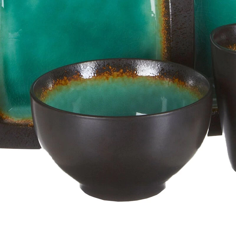 Gibson’s Ocean Paradise 16 Piece Square Stoneware Dinnerware Set in Jade features a unique reactive glazed finish. The tableware garners a crackle surface in rich jade at the center. These elegant square silhouette dishes make for a wonderful tabletop style statement. The table setting’s stoneware make is dishwasher safe and microwave safe. Item Dimensions: 23.50″ x 19.00″ x 17.00″ Item Weight: 26.00lbs