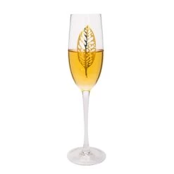 - Handcrafted in beautiful glass and decorated with golden leaf, each of these lovely champagne flutes hold up to eight ounces of your favorite bubbly.